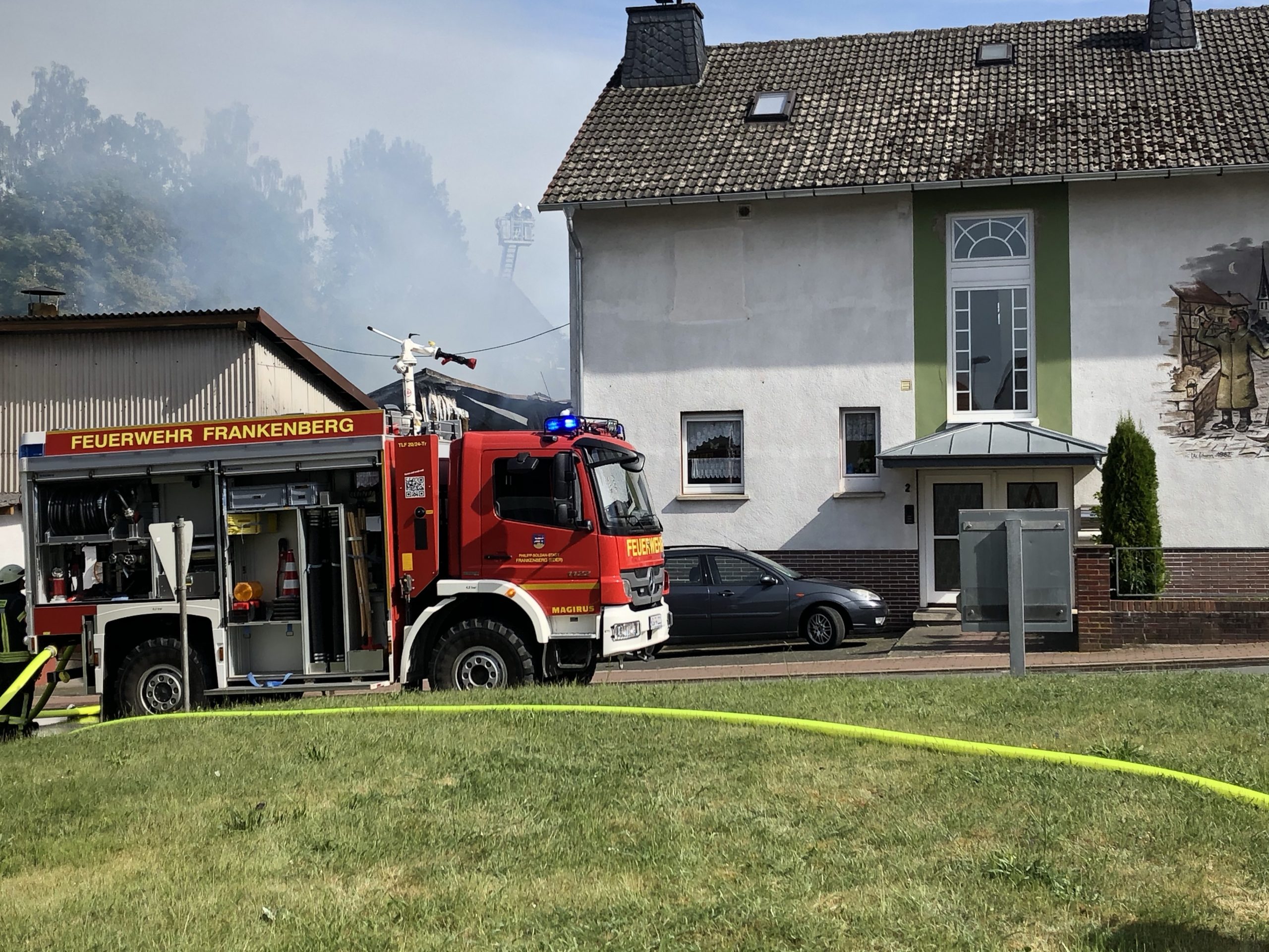 Da das Frankenberger Hilfeleistungs-Löschfahrzeug (HLF) beim Brand in Birkenbringhausen gebunden war, forderte Stroß das mit einer Seilwinde und hydraulischen Rettungsscheren ausgestattete HLF aus Battenberg an, weil zunächst von zwei eingeklemmten Personen die Rede war. Die Feuerwehr Röddenau übernahm unterdessen die Wache im Frankenberger Stützpunkt.