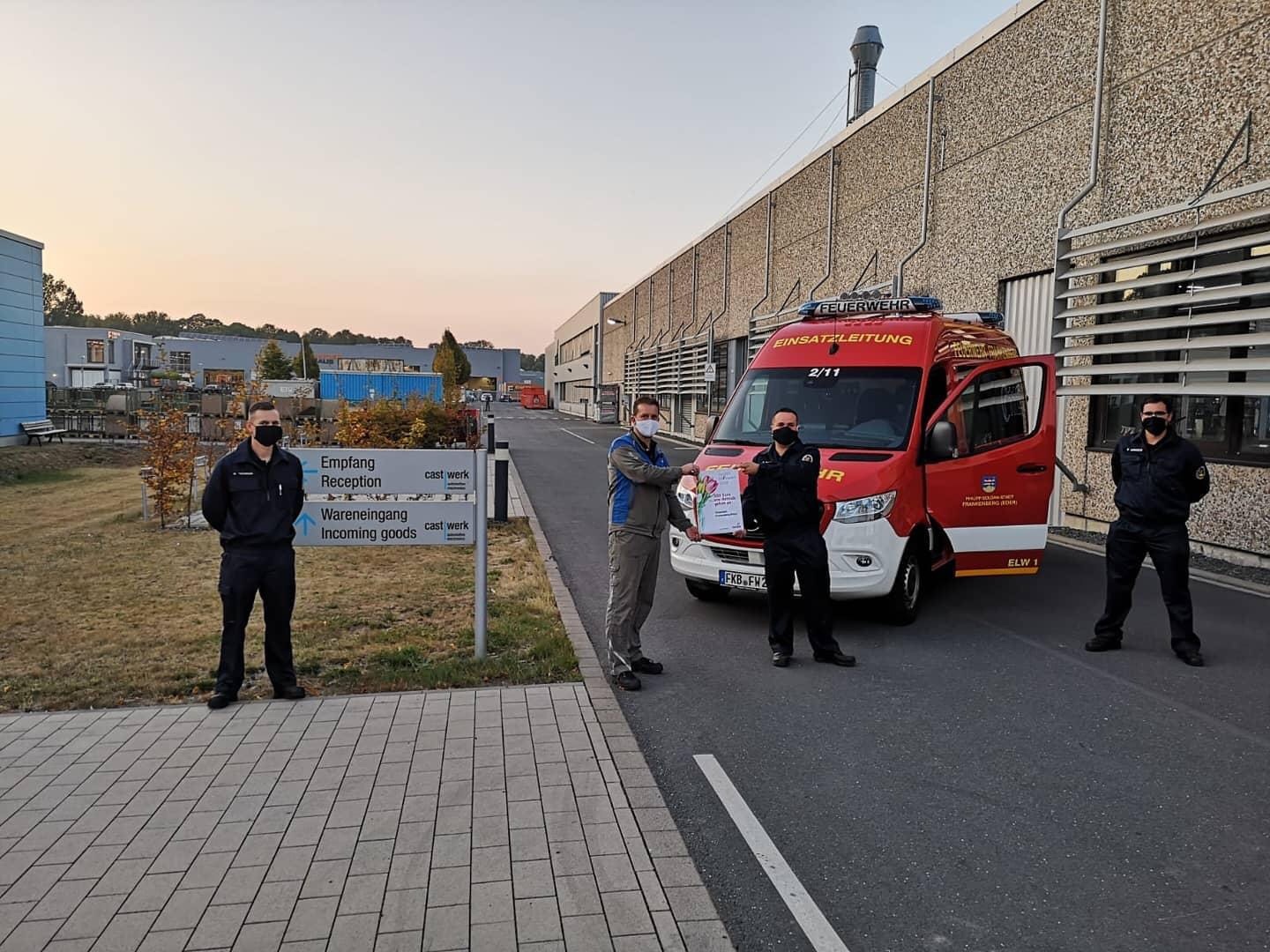 Die Feuerwehr Frankenberg bedankt sich über eine Spende in Höhe von 500€ bei der Hettich Group.
