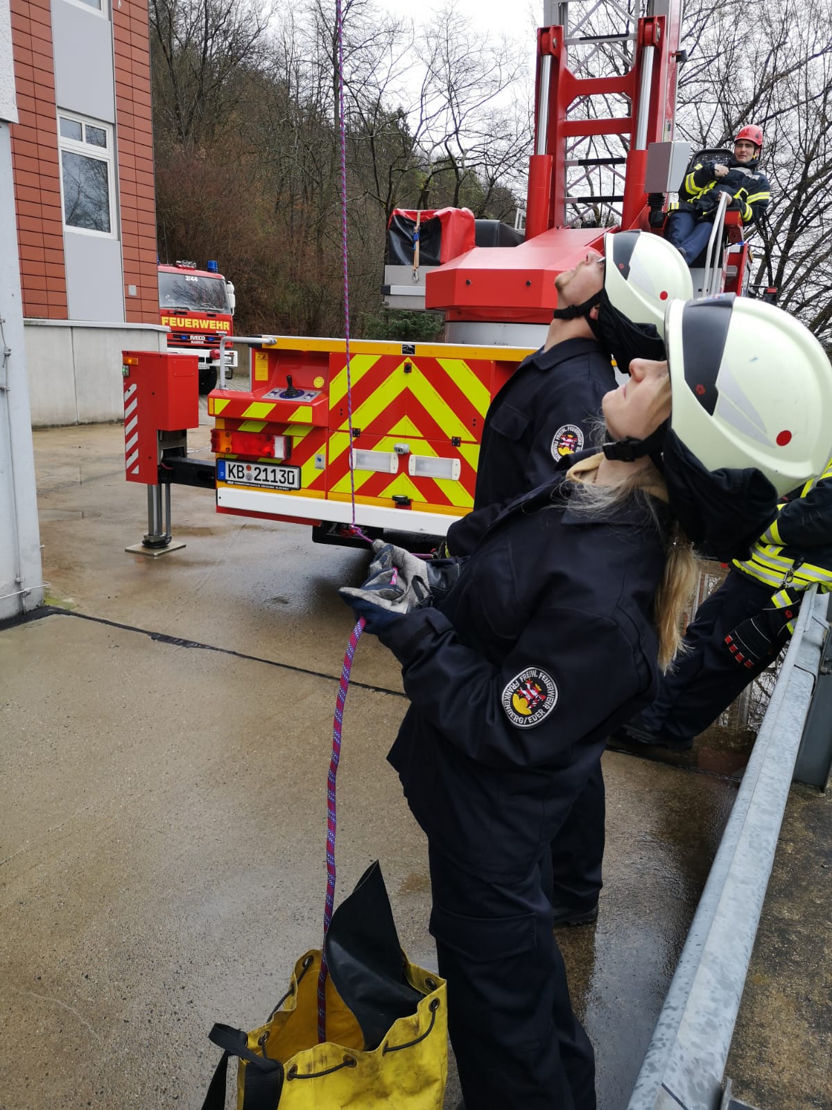 Vor wenigen Jahren noch als „Seminar Absturzsicherung“ deklariert, wurden die Anforderungen an die eines Lehrgangs mit zugehöriger praktischer und theoretischer Prüfung erweitert. Der theoretische Teil beinhaltete neben dem Thema rechtliche Grundlagen auch die Themen Grundbegriffe und Definitionen, Einsatzmöglichkeiten und Grenzen sowie das Thema Material- und Gerätekunde einschließlich der Überprüfung und Pflege der Gerätschaften. Nach der Theorie folgte die Praxis. Hierbei erlernten die Kameradinnen und Kameraden zunächst die notwendigen Knoten. Im Anschluss an die Knotenkunde wurde ihnen dann die richtige Anwendung der Gerätschaften am Hubrettungsfahrzeug (DLK) und am Gebäude des Frankenberger Kreiskrankenhauses vermittelt. Auch die Möglichkeiten der Personenrettung in Verbindung mit dem Gerätesatz Absturzsicherung sowie die Selbstrettung waren Bestandteil der Ausbildung.